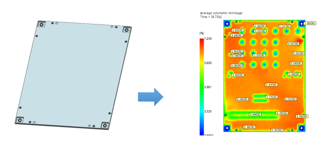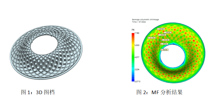 左圖為3D圖檔,右圖為MF分析出縮水問(wèn)題點(diǎn)