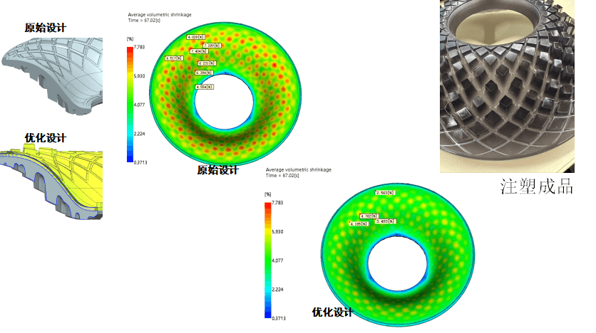 此案例中,縮水嚴(yán)重程度是憑經(jīng)驗(yàn)無(wú)法預(yù)計(jì)到的缺陷,如果在試模后再調(diào)整澆口位置及方案,將導(dǎo)致模具開發(fā)成本的增加