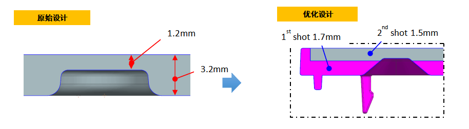 最后提出在不改變客人ID的情況下,將現(xiàn)有單色產(chǎn)品改為雙色成型,進(jìn)行MF驗(yàn)證