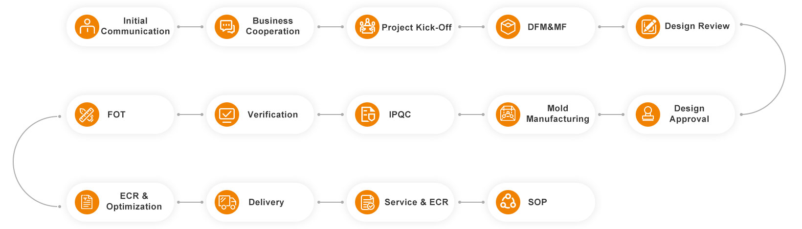 Scientific mold testing process, imported equipment from Europe and Japan, Provide full dimension sample measurement and CPK testing, 48 hours certification run before shipment